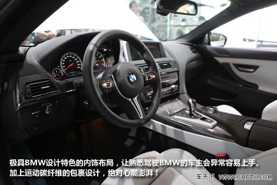 在内饰方面,宝马M6 Gran Coupe与M6 Coupe如出一辙,同样是采用大量的真皮、碳纤维材料来提升整个内饰的运动氛围,在方向盘和挡把等处出现的“M”标识和蓝红色的缝线体现出与普通6系车型的差别。