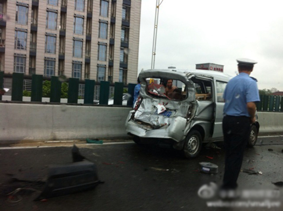 沪上南北高架四车追尾 二车受损一人伤