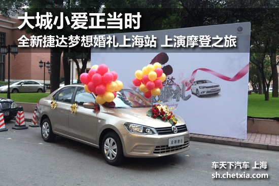 身为活动主持的新娘对于这场创意独特的浪漫婚礼亦显得十足的新奇和甜蜜兴奋,而身为摄影师的新郎则可以即兴抓拍这终身难忘的典礼中的浪漫时刻,将感动凝固成永恒。作为摩登大都市里的摩登职位,活动主持和摄影师均需要时刻迸发的创意和源源不断的热情,这与今天的婚礼相得益彰,而全新捷达时尚靓丽身影的加入,为这个创意婚礼增添鲜亮的摩登注脚。2013年10月17日,一场以“永捷同心”为主题的摩登婚礼,在魔都上海上演。一个国际大都市的一场小婚礼,怎么说都是“小城小爱”,但足够摩登足够难忘。