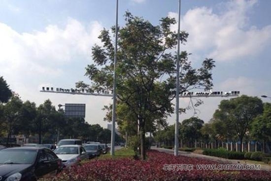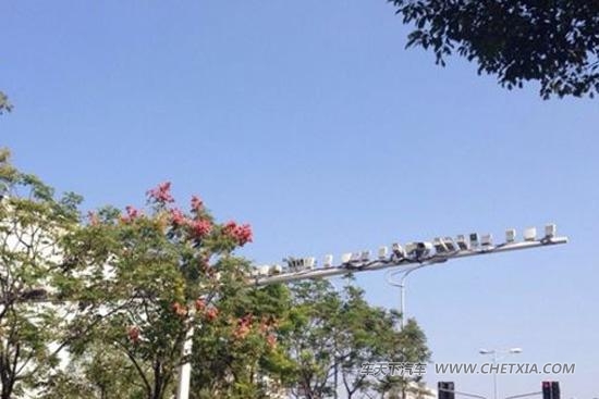 今天上午,新民网记者在现场看到,友谊路是一条双向六车道的马路,而摄像头位置距离克山路路口约10米,南北两侧各有27个摄像头分布,共计54个,远远看上去,像一排小鸟。记者注意到,这54个方形或长方形的物体,其中部分是闪光灯。据记者观察,车辆开过时,不时会亮一下,说明设备还在工作中。