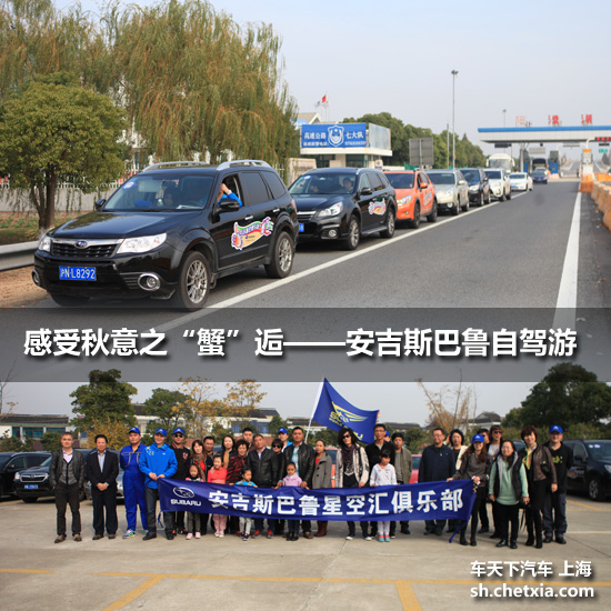 【车天下上海讯】秋风起,蟹脚痒——每年江浙沪周边的朋友们到了10月之后,就开始想要感受鲜美的大闸蟹美味了!2013年11月23日,安吉斯巴鲁携手斯巴鲁星空汇俱乐部车友会会员,一起组织了一场“蟹”逅之旅!浩浩荡荡的16台斯巴鲁车组成车队,向阳澄湖进发!