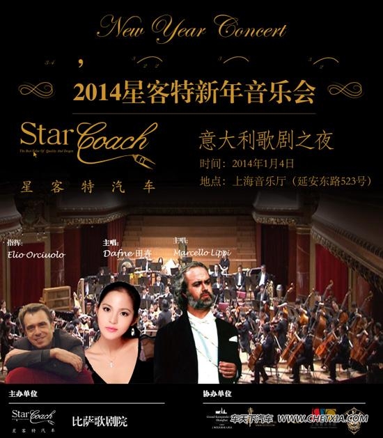素有“豪车订制之王”之称的星客特汽车之夜于1月4日在上海音乐厅成功举办2014年星客特新年音乐会暨意大利歌剧之夜。此次音乐会由国内首家私人订制豪车企业星客特汽车主办,感谢TEF、开思 凯宾斯基、上海爱乐乐团、寺库的大力支持、使星客特新年音乐会为马年献上一场视听饕餮大餐。