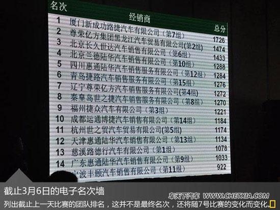 在比赛当天进行了简单的签到入场后,主持人开始讲解本次比赛的概况,而现场一旁的电子名次墙第一时间吸引了我的注意力。上面清楚的列出了在上一天的比赛中15个经销商团队的排名,这一名次也将随着决赛最后这一天的变化而变化着。