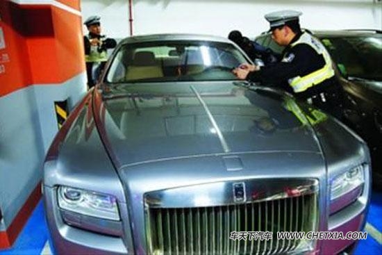 一辆市价超过400万元(报价 参数 图片 论坛)的劳斯莱斯汽车,再加上一辆市价近100万元的路虎越野车……上海警方在整治套牌车的持续行动中,收获了马年以来的“最豪华阵容”。昨天下午,记者从位于浦北路家乐福超市的执法现场获悉,市交警总队机动支队执法队在同一停车场内同时查获两辆涉嫌套牌的豪华车,车辆总市价逾500万元。