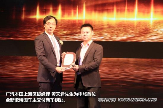 【车天下上海讯】5月10日,极致魅力.纵横驾驭——广汽本田全新歌诗图(报价 参数 图片 论坛)上海区域品鉴会暨全系车订车会在上海.浦东2062新能源主题公园隆重召开。上午品鉴会广汽本田厂方领导与9位经销商一起为“最强跨界车”-新歌诗图揭幕。本次活动邀请了上海地区主流媒体及业内知名人士共同鉴证了这一历史性时刻。