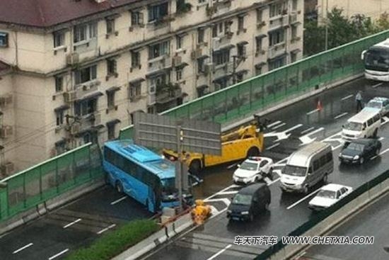 高架闸道大巴事故 侧滑后堵住两条车道