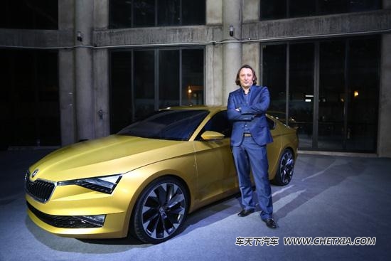 专为中国市场定制的金色版“VisionC”在斯柯达品牌日全球首秀,斯柯达汽车设计部主管Jozef Kabaň先生介绍其设计理念